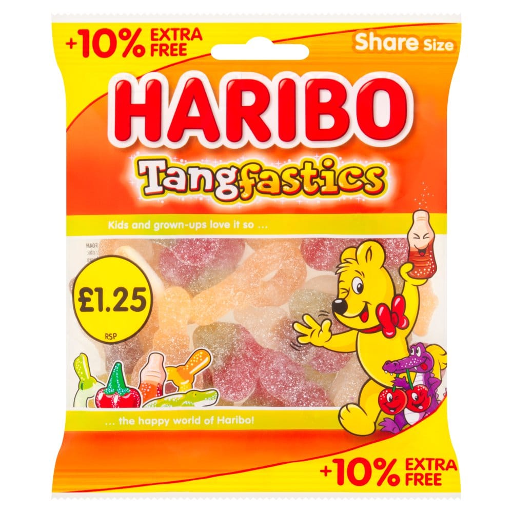 Be the first to review “Haribo Tangfastics Fruit & Cola Flavour Fizzy Jelly Sweets Sharing Bag 154g” Cancel reply